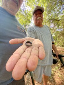 June 2023. I received a call late on a Friday afternoon from a gentleman living in far west Saint John’s county saying that he had lost a very sentimental ring while cutting down some Oak tree branches on his property with his wife. No worries, I made plans to drive out to him first thing Saturday morning to find the ring. Arriving at this home he came out to meet us (brought a friend along who was getting into metal detecting) and judging by the way he carried himself, the walk that tells you, “He’s a bad dude!” Ex Marine kind of walk.