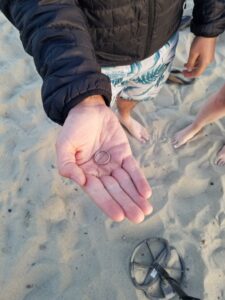He’d lost it while tossing a football around. It was immediately “swallowed” by the dry sand. Glad I could help you guys. Thanx for the tip !