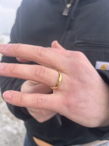 I received a text from Henry who had lost his wedding ring on New Year’s Day in the parking lot at the Gerald R Ford International Airport. He had returned 3 times to try and locate it with no luck. He and his wife had recently moved to the Grand Rapids area from TX and were desperate to locate his ring which had been his wife’s Great Grandfather’s. It was one of only a few items that her great grandparents were able to escape Poland with during WWII. It was engraved with their wedding date back in 1923. Even though the parking lot had been plowed, I was able to locate it covered in snow after a short search. It was a little dinged up from being run over by the plow but Henry was amazed and elated he had it back to pass on to the next generation.