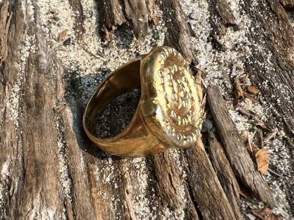This ring find began when I got a call from Matt who was on vacation from Seattle and after returning from a swim went to flick a piece of beach slime from his hand his ring flew off and disappeared into the sand.  I told him I just got back from Ko Olina but after grabbing a bite to eat I would return to find his ring in the dry sand near the beach chairs.  When I arrived Matt waved me down as I entered the beach area.  We walked over to the search area and Matt described what had happened.  I assumed this would be a quick find and I would be on my way back home.  I searched the area in front of the chairs where Matt thought the ring should be.  No Ring!  We moved the chairs out of the way and searched again.  No Ring!  I expanded the search grid to double the size in each direction.  No Ring!  I started discussing to Matt about other possibilities and he began to think it might have fallen off in the water or elsewhere.  I decided to do a grid search at 90 degrees to the initial grid but this time I went way down towards the water.  Actually about triple the grid size and BOOM!  One scoop Big Gold Ring Found!  Matt didn’t know his own strength.  That ring went for a launch!  Big relief for Matt and his lovely wife Katherine.  Aloha to Matt and his family!