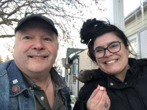 When Desh arrived we walked the area before I got my metal detector out of the car. The search area was about half a block when you consider where his car was stuck and where he walked to borrow and return the shovel. As I always do…I asked where he felt that the ring most likely fell out of his pocket. He felt confident it most likely fell out in the area of the street where the car was stuck. He said he was on his hand and knees digging in that area. We walked over there….it was dirty snow…2-3 feet deep in places where the plow came through. It was variable in depth because of cars driving through with big snow boulders here and there. I told Desh and his friend that I need to be able to sweep my metal detector so the area needed to be flattened out. The peaks and troughs are going to make it impossible for me to effectively scan the area. He and his friend began working with shovels to smooth it into a flat surface. The metal detector I was using would, at best, pick up a gold ring to a depth of 15 inches. It is a new and amazing machine featuring Bluetooth headphones to alert me to potential target signals. I was 10 minutes into scanning the area when I received a strong signal in my headphones. The signal identification number on the machine was suggestive of gold. Could it be? The signal came from a huge boulder of icy snow. Desh and his friend surrounded me in anticipation. I kicked the big ball and broke it in half. Now I was getting the signal from one half. I kicked that half and it broke into 2 pieces again. Again I was getting a signal from one piece. I kicked again and it broke into 3 apple sized snowballs. I scanned the 3 and was still getting a good signal from one of the snowballs. I picked it up and handed it to Desh. I told him something was in it. I was watching Desh intently as he gently broke the little snowball into smaller pieces. As I watched Desh choked and his eyes welled up with tears. He couldn’t speak for 30 seconds. Then he finally got the words out…you found it!!! Divine intervention? I’m not sure. I know this recovery will go down as one of the most meaningful for me for sure. Not just because it was so unlikely I was going to find it but because how much this ring meant to Desh. Over the next 10 minutes Desh welled up with tears 3 more times while sharing the history and significance of the cherished ring that I’m proud to say is back on his finger where it belongs.