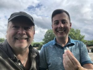 From the summer of 2024 to summer of 2025, Austin found it hard to believe that the year had passed so quickly. While him and the family enjoyed the new house, it was time to move again but around a year ago his wedding ring went missing. With 2 weeks left to vacate the house he often paused-rewound-replayed the events over the last year musing over where it may be. When I arrived, he had 2 locations he had a good vibe about. One was in an area where he was picking up the children’s toys for the winter and the other was in the neighbor’s yard while he was helping them install rabbit fence around a garden. I selected Track 1- “toys” and started grid searching with my MXT metal detector but all I heard was hissing/popping/crackle sounds thru my headphones from bad ground. Selecting Track 2 “rabbit fence” I started to metal detect the area and got a sweet-sounding tone thru the headphones. Digging down an inch revealed that the sweet melodious tune I heard was from Austin’s tungsten ring! As he reached down to pick up the ring, he was thrilled that we cued up the right track and it wasn’t just his imagination.