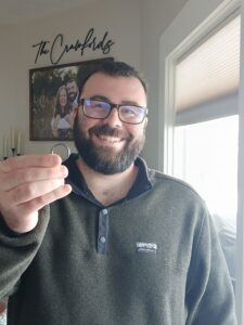 Alexis took me over to the area, and showed me where he had been working. The area was not big, but there was a lot of loose soil where he had been working. I went over the area slowly finding some aluminum and foil, but no ring, so I began to go outside of the zone. Away from his work zone, and in some tall grass I got a good tone in the head phones. I looked down, and there was his ring. He was surprised it had gone over to that spot, but figured it had flipped off when he removed his glove. I made his day, and he was able to have his wedding ring of 43 years back on his finger again.