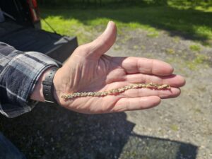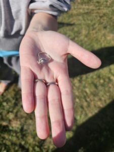 Now, I remember Chuck very well. Back in early May, 2024, we recovered his wedding ring, on his property, in Westbrook, Maine. Chuck owns 20 acres of old farmland, along the Presumpscott River. It is no longer a working farm but Chuck still plants crops in a few areas, on the 20 acres. The previous year, 2023 Chuck had been working the property, tilling the garden, bush hogging another area and doing something, on his tractor. At the end of the day, he noticed his wedding ring was missing. At the time he lost it, he didn’t know about The Ring Finders of Maine and the wedding ring remained lost on his property, until he heard of our service. After close to 9 or 10 months of the ring being lost, Chuck heard about us and contacted us. Being that the wedding ring could literally be anywhere on approximately 5 or 6 of the 20 acres, I brought a backup metal detector with me, so Chuck could help in the search. Long story short, Chuck ended up finding his own ring, in the area where he had been changing blades, on the Bush Hog.