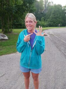 Today, August 1st, Cheryl and I arrived promptly at 8:00am and Brooke and Mike came right out, to meet us. Mike had to leave and get his two sons to rec camp but first took me to the area where the underground hornets nest had been. The underground nest was now defunct and filled in, thankfully. Mike showed me the route he ran , as he was fleeing the hornets. The grass hadn’t been mowed, which is a good thing, and because of the lack of rain, the grass wasn’t tall at all. If the ring were on the lawn, I would think it would have been visible to find. Mike and Brooke had already metal detected the lawn, along with visually searching, many times, without finding the ring. Mike had also started cutting back the overgrown wild raspberries vines, and other thick vegetation. I told Mike that I would grid the lawn, just to eliminate that area. The lawn wasn’t very large and I could do it in approximately 15 minutes. I would then try and get in the thick vegetation and vines, as best I could. Mike then left with his sons and Brooke had to get to work.