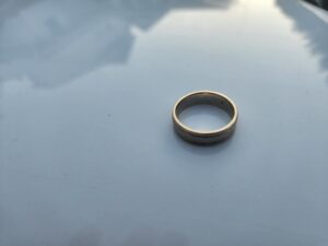 The thought to remove one’s ring before doing an activity may very well save the rings from being lost. However, for Linda the act of taking off her rings was what led to the disappearance for her wedding ring. While traveling in their rental car to their next destination, Linda decided to put on some sunscreen. The car her husband was driving had a large console in the middle of the car. On the console was a sliding door with a lip around the outside. A very nice resting place for her two wedding rings. Although the lip around the door was sufficient, the inertia caused by a right-hand turn sent the two rings flying. The large engagement ring stayed on the door, but the smaller thinner band had a mind of its own.