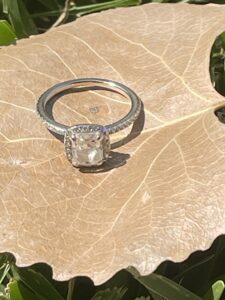 There once was a happy couple named Kassidy and Brian. They walked joyfully around a bike park while their kids rode their bikes. They sat for a while on a bench. Then they walked around the paths in the park and lastly headed back to their car. The days errands needed to be completed, so off to the grocery store they went. Then they returned back to their house. Kassidy had to begin working on the chores. Back and forth she went from left to right, walked all the while keeping a steady pace through each task. There were pumpkins to move, leaves to pile up, grumpy kids to tend to and then lastly a shovel to find. As Kassidy was walking with her shovel she could feel the coolness of the day creep into her hands. Nevertheless, Kassidy kept on working. Cleaning the chicken run, feeding and watering, and new bedding in the nesting boxes. The last step of putting fresh bedding in the nesting area caused another feeling to creep in. The last handful of wood shavings that she was throwing into the box, gave her a familiar feeling. Kassidy’s ring was gone. The fact of the matter was this wasn’t the first time that ring had fallen off. In fact, she knew the very sound it made when it would fall off of her hand and hit the ground. This time was different; the not so happy couple hadn’t the foggiest idea of where it came off at.
