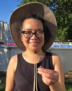 We met at the beach and I lined up using the photos which I learned were taken that morning, not two days ago when the ring was lost. A comment on buying a replacement ring was made. Briana sharply replied to with “The ONE and ONLY Ring” is in the water, no replacement ring will do! The more I searched the more I was told “further out”, “closer in”, further west maybe to the east. None of the area adjustments put me on top of the ring, not even the area were Kyle came into the water and stood were he “lost the ring”. I went back to the shore line again, asking for more information. Well maybe a bit more west, but not that far out. OK, I turned and without taking a step, swug the detector and got the best signal I had heard all day. I took the headphones off so Briana could hear what I was listening for. Then I took one scoop, and you bet…The Ring was in my scoop.