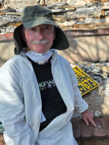 When we arrived the property was like the many thousands all around, burned to the ground. He showed me where the ring had been, and there was anywhere from 6 to 12 inches of rubble in the area. I began working through the rubble with my sifter plodding on, shovel full after shovel full, not finding the watch. Cliff had a scheduled appointment, and had to leave, so I stayed another 1 1/2 hours trying to find the watch with no luck. I sent him a text letting him know I was unable to find the watch, and that I was leaving before the curfew. Right as I was getting ready to leave I spotted a class ring at the edge of the search area, on top of some rubble. I sent another text to Cliff letting him know this, and it buoyed his hope, so he asked if I would be able to come back again. He let me know also that there was a revolver he would like to find that had been from a distant relative who had used it in the Civil War.