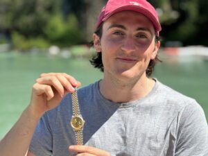 It was a very dark night on the windswept Carmel Main when I got the call, and although we had a bit of a language barrier, I was able to make out “Sunset, ring, lost, beach, Carmel, help, you have machine.” I grabbed my detector, scoop and all-important headlamp and headed out to the beach. The young couple from Italy had been enjoying an iconic California sunset, and as darkness fell, the young guy, wiping sand off his shorts, wiped his wedding band right off his hand, and right down a sandy slope. They wisely marked the spot they were at with a backpack, and so when I found them in my headlamps beam, I turned on my machine and I got to work. I swept in concentric circles from the backpack spot for about twenty minutes, chatting about how much I liked Italy when I visited as a teen. Unfortunately, we found nothing but aluminum pull tabs. Things looked grim. I figured maybe the ring flew farther than they surmised, and maybe some unlucky foot traffic also slid the ring down hill. I worked my way down slope and eventually, I did get a “faint 11” on my Equinox. Sadly, after three or four attempts, the signal disappeared. I walked back up the slope, and asked the young lady if there happened to be anything shiny in my scoop, she reached in and pulled out their white gold wedding band held it up and cheered. Disaster averted, and I got a huge hug from her, than one from the guy too! He gave me some “American Dollars” as a reward, and I even got an invite to Italy! I was happy to send the now much happier couple off to Morro Bay, to continue their vacation!
