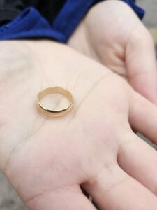 This gold ring was a promise ring from 60 years ago, very sentimental to say the least! After slipping it on to her grandchild’s finger and a quick run around in the back yard, the ring just seemed to have come off and disappear. I was contacted and made my way over to North London. After about 10 minutes I picked up that solid tone I love. What a gift for her on Mothers day! So glad I could help.