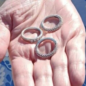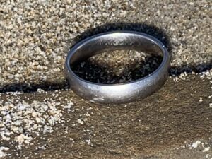 There were a few areas that I could see where people had been searching, as the sand was all disturbed. Aryane told me she remembered standing next to the burnt wood, of a bonfire, the night before. She and Benjamin were then just 10 feet or so, to the north west of the burnt wood and it was this area, that most of the searching by Aryane, Benjamin, the lifeguards and my follower had been taking place. I told Aryane that I would start my grid search, next to the burnt wood and work my way north, to where the lifeguards had the chairs, just 15’ or so away. I would grid search, towards the beach access path, covering the area, where they had been searching. With Aryane, the lifeguards and my follower watching me, I started my first grid pass. Within 30 seconds, I received a very nice sounding low tone, registering a 27, on my VDI screen. Definitely in the gold range but I tempered my excitement became nickels ring up as a 27 and are also a low tone target. I retrieved my pinpointer and located the target. I started running my fingers, down into the sand and felt the target and it had a hole in it. It had to be the ring and was very heavy, for its size. As I pulled the target out of the sand, I could see the brand new shiny gold just shimmering, in the morning sun. I had just found Aryane’s Engagement Ring, of one day and I then heard the shriek of excitement, clapping and hollering, from the people watching me. The lifeguards were just amazed that I had found it so fast and I told them that it’s better to be lucky, than good. As I passed the ring back to an extremely happy and excited Aryane, she immediately put it back on her finger and gave me a hug. All the nervousness had left Aryane’s body and she now had a happy bounce as she walked and it was a great feeling to see her smiling. I would like to thank my follower for the referral and for her concern for Aryane. It was a genuine concern and she helped Aryane with support, while they searched. I would also like to thank the lifeguards who helped look for the ring and also gave Aryane support.
