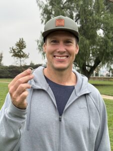 I gridded the area with no luck so I went back to where I started and I got a nice low VDI double signal and I knew this had to be his ring. I had to use my pin-pointer in the dense grass to recover his ring.