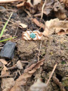 A client called me about a lost rose gold men’s wedding ring near their garden area. I was able to schedule a search within a week. After initially searching the garden without success, I expanded the search to the surrounding area and found the ring hiding in the grass. The owner was thrilled to have his ring back.