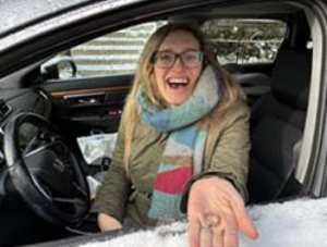 Yesterday, I received a call from Tegan requesting my assistance in locating her lost engagement ring. She had lost the ring while brushing snow off her vehicle around 6:30 am. Although she felt the ring detach from her finger, she was unable to determine its direction of travel.