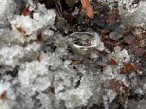 Received a call from a woman whose husband lost his gold wedding band while wiping off the snow from his car.
