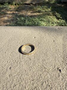 I received a call regarding a lost gold ring that had gone missing somewhere in the backyard. While completing several tasks throughout her day, the client realized the ring had slipped out of her pocket. After searching the area with no success, she reached out for assistance. I was able to schedule a service visit and begin searching the yard — and soon, the ring was found. She was very happy to have it safely returned to her.
