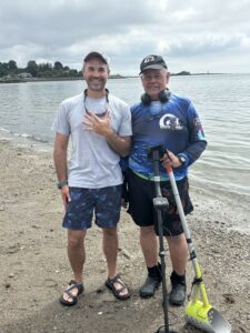 24 July 2025.  Dave lost his wedding ring while in the water at a local private beach when they were visiting with their friend Bill.  Dave and his wife Liz were married only last August and needless to say, their spirits were crushed with the loss.  But having no idea where the ring might have escaped from Dave’s finger, they were resigned to never seeing it again.