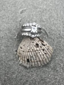 On 8/21/25 at 3:20 pm I received a text message from Nataly saying, “Hi! How much would you charge to find a ring? I’m at n Myrtle Beach.” I called Nataly at the number attached to the text and told her I do this on a reward/gratuity basis. I asked her the details of the loss, and she told me the ring had been put in a shirt pocket and then in a bag. At some point the shirt was taken out of the bag not knowing the ring was in the pocket. That’s when the ring fell into the soft sand and disappeared. At first, I thought she was in Myrtle Beach (because I didn’t see the small ‘n’) so I told her I could be there in 30-40 minutes. I asked her to send me the address and was out the door. When I got the text with the address, I called her to confirm it was in North Myrtle Beach, which she did. So, my drive time was down to 15 minutes.