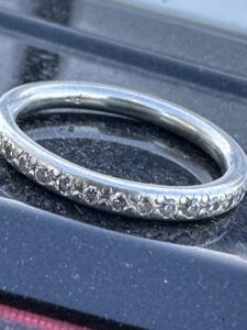 Received a message about a lost men’s white gold wedding ring that had been accidentally thrown into a yard. After an extensive but unsuccessful search by the owner, I was called in to help. I conducted a thorough search of the area and eventually found the ring hidden in the grass. The owner was incredibly happy and relieved to have it back.