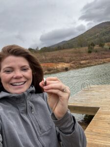 Riley’s husband accidentally dropped his wedding ring off the dock after a swim in the lake. They searched for it, but unfortunately were unable to find it. That was about two and a half years ago, then Riley contacted me relaying the story. Her anniversary was coming up and she hoped to surprise her husband by returning the lost ring. We scheduled a time to meet at the lake, when her husband was away on a trip. She remembered very well where the ring dropped which was a huge help in narrowing the search area. The bottom of the lake angles toward deeper water, so I figured it probably slid and settled a little farther out from where it originally fell. I heard a few signals as I waded out into the water, and it didn’t take long before I heard what I was listening for. The ring was about 5 inches down in thick clay-like sediment. I was so happy to be able to help Riley with her very thoughtful anniversary gift to her husband. She was able to surprise him with it only a few days later.