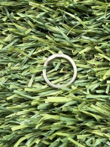 The next morning we met at the location of the loss. It was a quick recovery because Kara had the address of the home directly in front of where the purse spill happened. The small eternity style was not visible in the long blades of grass as the ring worked its way deep. This happens often when people start raking their finger through grass or sand. The metal detector is the right tool for this type of recovery.