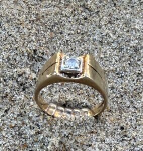 Lost Heirloom Gold Diamond Ring in Sand at Laguna Beach, CA.. Recovered by Member of TheRingFinders