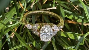Breanna lost her beautiful engagement ring in a large park while working out. Her workout spanned from the playground through the vast field and small hills while doing a band workout that included bear crawls. My partner Jeff and I spent a combined 27 hours searching before I ran across it. The couple even went out and bought their own detector to try to find it. On day 3 I decided to do a grid search since the area was so large. I had 2 steps left before I was going to call it a day when my detector screamed at me. I looked down I saw it shimmering through the thick grass. When I told Breanna she was in disbelief as was her fiancé. This was a very stressful long weekend for them that turned and hopefully someday be a great story. It really did take awhile for it to sink it that it was found. Happy tears, here’s to many happy years !