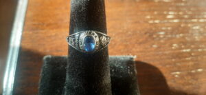 I got a call from a young woman who lost her wedding set. She put her rings in her pant pocket, set her pants down to change to go into her pool. While she was in her pool her dog grabbed her pants and took them from the backyard around to the front of the house. She had a good idea of where they might be. When I arrived the entire yard was xeriscaped and under construction. There were roofing nails, screws and all kinds of building material everywhere. I started where she thought they could be which was in the front yard, with no success. On the side of the house there was a patch of hay and random trash, building material etc. After many signals from nails and screws I got a solid signal in the hay pile. One ring found….about 2 feet away in the hay was the other. She was so surprised I had found it so quickly, honestly so was I. Most of that time was trying to get the dog away from playing with the detector coil. 🙂 She was shy and did not want to show her face but was happy to model on her hand.