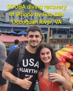 Meaghan called me on July 4th and asked me to find her lost phone. She had been kayaking and was returning the rental to Penguin Paddling in Occoquan when her iPhone Pro Max slipped into the water. I quickly grabbed my SCUBA gear and hurried to the river.